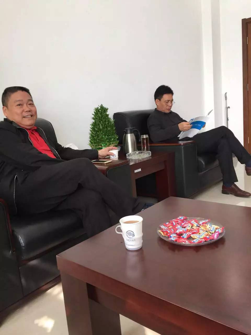 △圖為濱化集團(tuán)王樹華總經(jīng)理觀看我公司宣傳冊(cè),并與謝同寶董事長(zhǎng)愉快交流