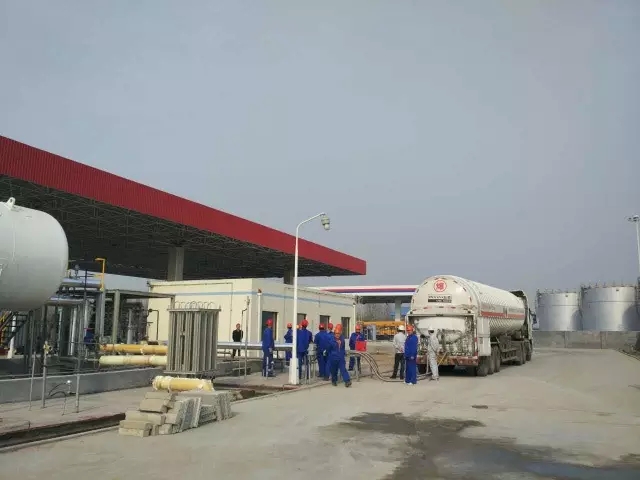 廠區(qū)內(nèi),雙方工作人員熱情高漲,密切配合,經(jīng)過調(diào)試及管道連接,我公司第一車22噸LNG順利卸載完成,這標志著我公司和濱陽燃化的多年友好合作再一次拉開新的保供序幕。此油氣合建站不僅能為來往運輸車隊提供燃料,同時可將儲罐中的LNG通過氣化、調(diào)壓、計量等工序送入廠區(qū)內(nèi)日用氣量達2萬方的鍋爐燃氣管道,保供濱陽燃化工業(yè)用氣。