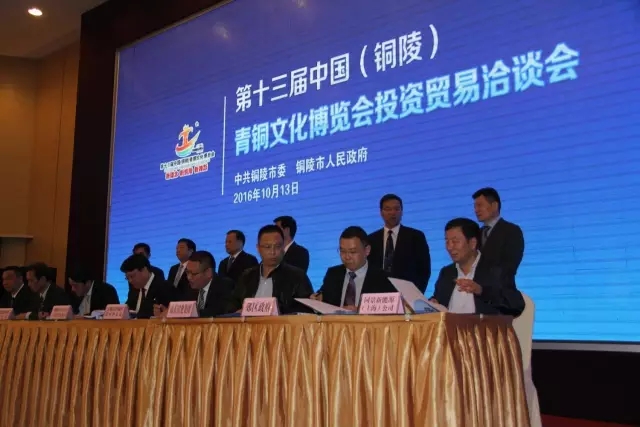 以銅為媒,以節(jié)會友,銅陵迎來了眾多海內外的投資者。10月13日上午,第十三屆中國(銅陵)青銅文化博覽會投資貿易洽談會在銅舉行,先后成功簽約了13個重大項目。公司謝同寶董事長、濱化集團濱陽燃化有限公司李嘉驪總經理出席此次洽談會。我公司主推的2萬方液化天然氣衛(wèi)星儲備庫項目在此次洽談會簽約成功。