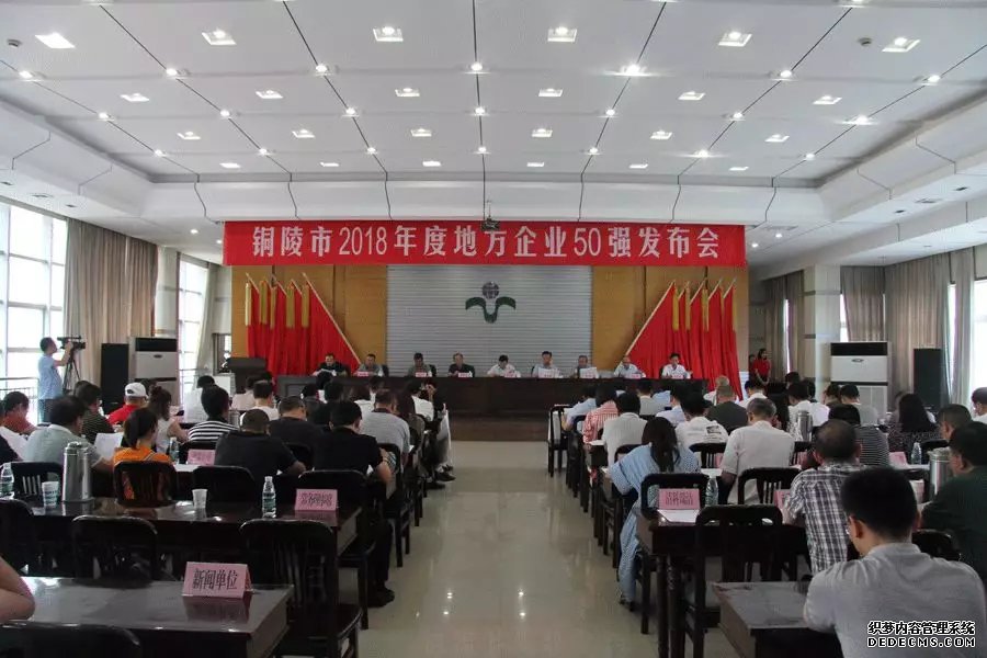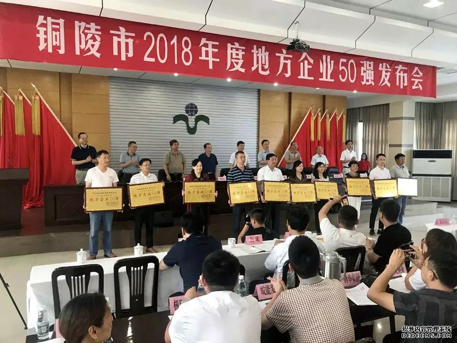 2019年7月3日下午,由銅陵市企業(yè)聯(lián)合會、銅陵市經(jīng)濟和信息化局、銅陵市統(tǒng)計局聯(lián)合舉辦的“2018年度銅陵地方企業(yè)50強”發(fā)布會,在銅化集團四樓會議室隆重召開。市委常委、常務副市長程雙林,市老干部、市“三會”老會長唐世定,市經(jīng)信局局長李勇,市統(tǒng)計局總統(tǒng)計師周睿,市社會組織和專項事務管理局局長楊宏斌,銅化集團公司董事長陳嘉生,50強企業(yè)負責人,市企聯(lián)部分會員及新聞單位記者等共計近百人一同參加了會議。靈通集團董事長謝同寶、總經(jīng)理吳德紅受邀參加了會議和授牌儀式。