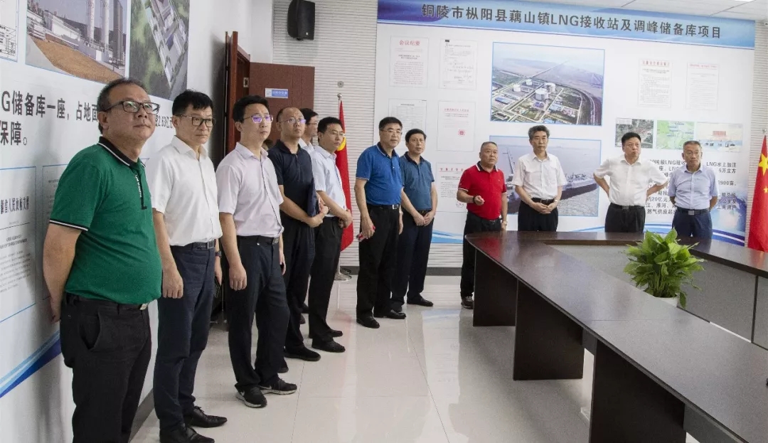8月8日下午,安徽省委常委、常務副省長鄧向陽率隊來我公司,實地調研我公司樅陽縣藕山鎮(zhèn)LNG碼頭、調峰儲備庫及經開區(qū)LNG調峰儲備庫等項目情況。省政府副秘書長李必方、省發(fā)改委副主任胡再生、省生態(tài)環(huán)境廳副廳長羅宏、銅陵市委副書記、市長胡啟生、副市長黃化峰、市政府秘書長周劍,市經開區(qū)管委會主任都述奇,銅官區(qū)區(qū)委書記查文彪等領導陪同參加視察活動。
