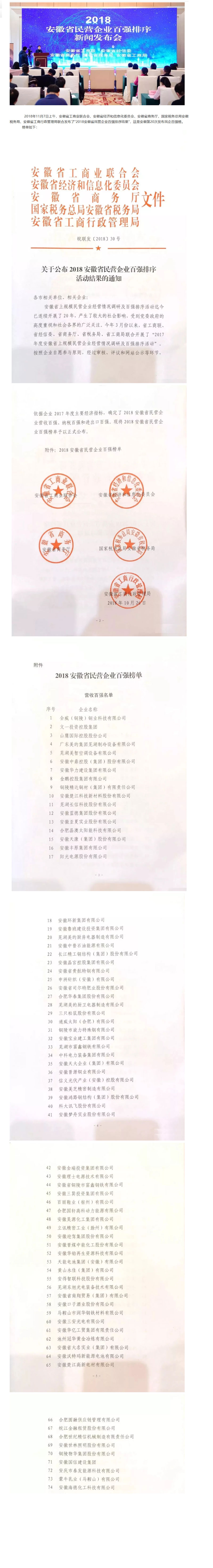 2018安徽省民營企業(yè)百強(qiáng)榜單發(fā)布