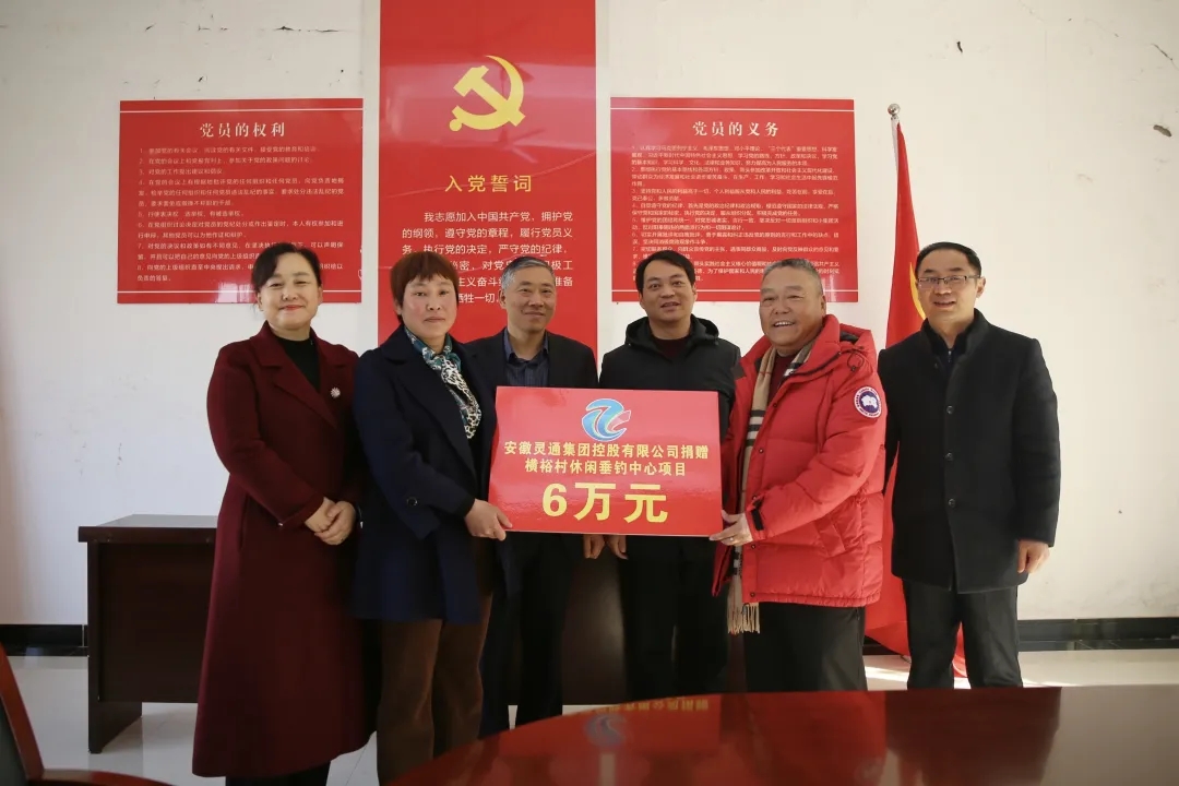2021年12月21日,靈通集團(tuán)董事長謝同寶、總經(jīng)理吳德紅一行赴銅陵市郊區(qū)老洲鎮(zhèn)橫裕村開展鄉(xiāng)村振興活動(dòng),并捐贈(zèng)6萬元人民幣用于該村垂釣休閑中心項(xiàng)目,銅陵市工商聯(lián)副主席陳衛(wèi)斌,郊區(qū)區(qū)委常委、政法委書記翟剛,郊區(qū)政協(xié)副主席、工商聯(lián)主席潘百寧等領(lǐng)導(dǎo)全程陪同。