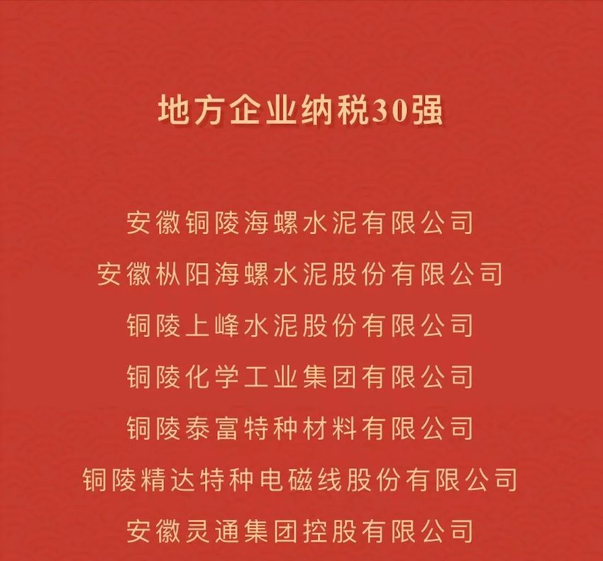 6月22日下午,2021年度銅陵市“地方企業(yè)50強(qiáng)”、“納稅30強(qiáng)”發(fā)布會(huì)在銅化集團(tuán)會(huì)議室召開(kāi)。市老領(lǐng)導(dǎo)、市“四會(huì)”創(chuàng)始會(huì)長(zhǎng)唐世定;市人大副主任汪宜武;副市長(zhǎng)楊如松;市政協(xié)副主席黃學(xué)龍;市委宣傳部副部長(zhǎng)王時(shí)武;市經(jīng)信局局長(zhǎng)李勇;市稅務(wù)局黨委委員、總會(huì)計(jì)師孫國(guó)甜;市民政局副局長(zhǎng)楊宏斌。靈通集團(tuán)董事長(zhǎng)、市“四會(huì)”輪值會(huì)長(zhǎng)謝同寶;靈通集團(tuán)總經(jīng)理吳德紅;財(cái)務(wù)總監(jiān)谷芳參加發(fā)布會(huì)及授牌儀式。