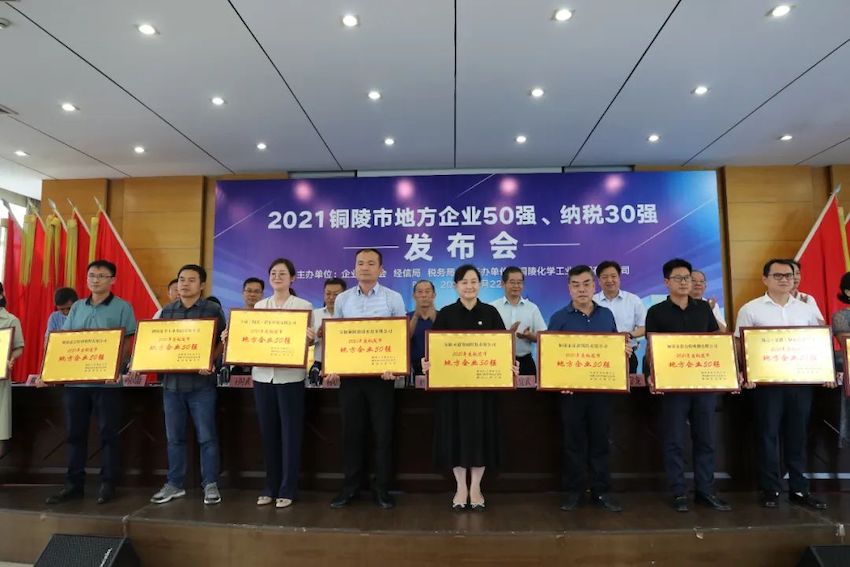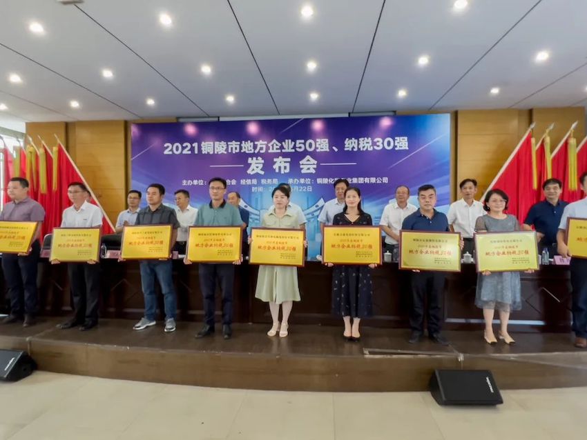 發(fā)布會(huì)現(xiàn)場(chǎng),靈通集團(tuán)憑借不斷提升的經(jīng)濟(jì)效益和突出的社會(huì)貢獻(xiàn),榮獲2021年度銅陵市“地方企業(yè)50強(qiáng)”,位列第五;“地方企業(yè)納稅30強(qiáng)”,位列第七,雙榜均在前十強(qiáng)排列,總經(jīng)理吳德紅、財(cái)務(wù)總監(jiān)谷芳作為企業(yè)代表上臺(tái)領(lǐng)取獎(jiǎng)牌。