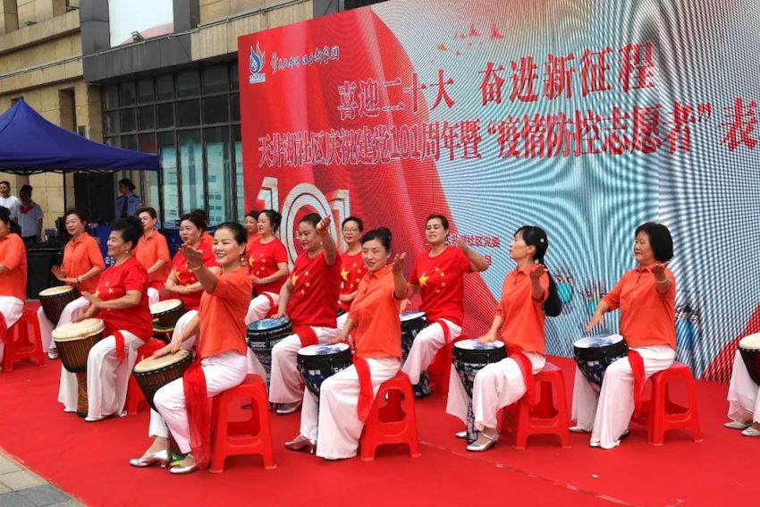 上午8:30分,文藝演出伴隨著暖場鼓《愛我中華》和《最美的中國人》拉開了序幕,活動現(xiàn)場節(jié)目精彩紛呈、形式豐富多樣。本次演出,沒有特別的舞臺,沒有夢幻的燈光,大家歡聚在此,用平凡熱情的演出,去慶祝黨的101歲生日。這些節(jié)目無不向大家傳達中國共產(chǎn)黨帶領(lǐng)下的人民對黨的熱愛和居民朋友們幸福的快樂生活。