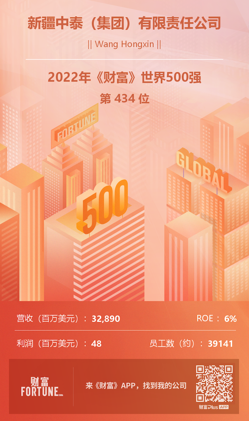 中泰集團(tuán)前身是始建于1958年的新疆燒堿廠,2006年中泰化學(xué)在深交所上市。2012年7月自治區(qū)人民政府在中泰化學(xué)基礎(chǔ)上成立中泰集團(tuán),2021年5月改組為國(guó)有資本投資公司。2021年入選“全球化工最有價(jià)值品牌25強(qiáng)”,連續(xù)五年進(jìn)入“上市公司500強(qiáng)”,2022年成為自治區(qū)首家世界500強(qiáng)國(guó)有企業(yè),居于第434位。